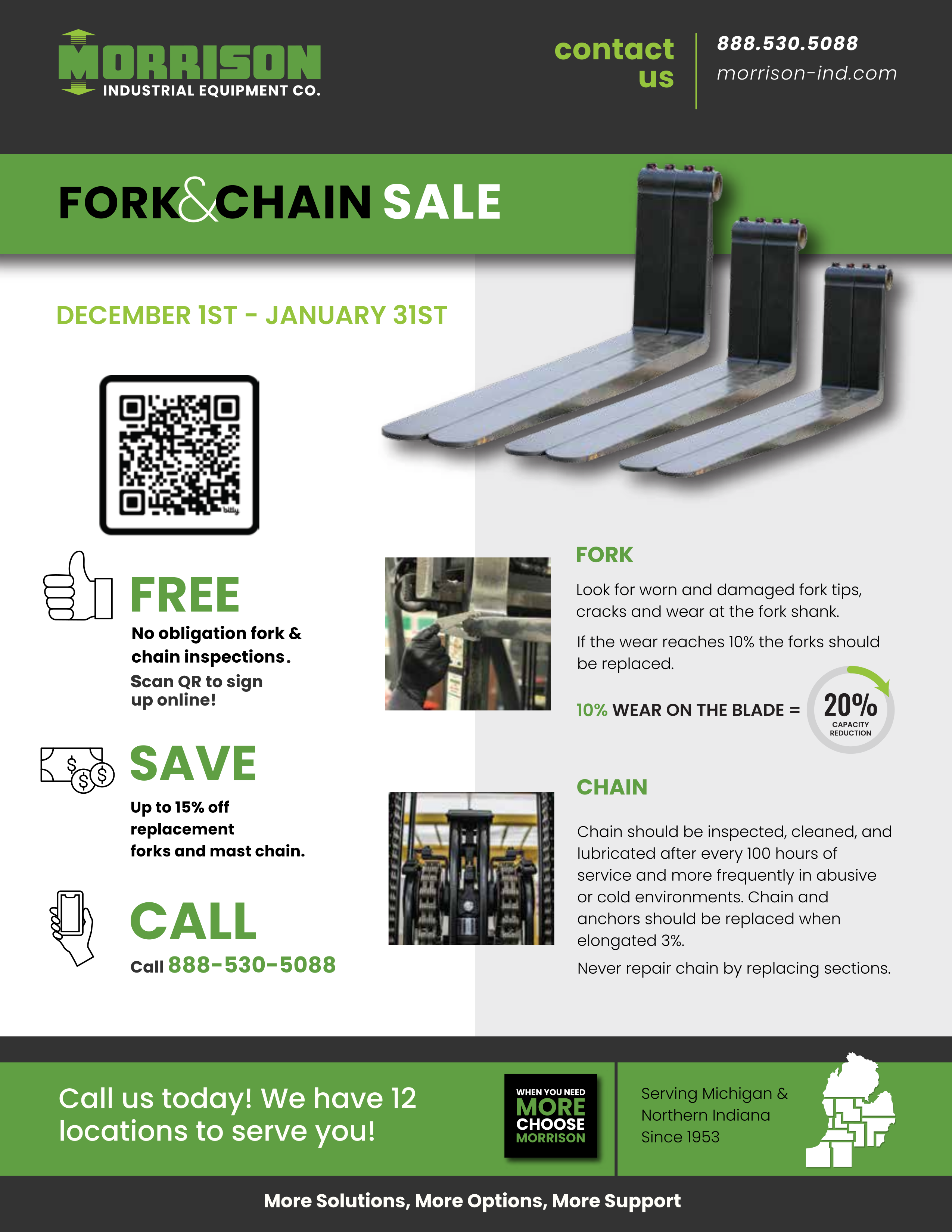 Forks and mast chains are crucial to safe forklift operation - sign up today for your free, no - obligation fork and chain inspections, and plan to save up to 25% on forks and mast chains this winter.